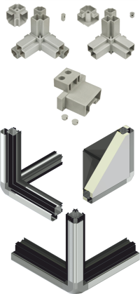 The casing frame is constructed of heavy extrude Aluminum profiles with Thermal bridging factor TB3, jointed together by means of special corner pieces made of solar radiation resistant glass reinforced polyamide, of excellent mechanical chararacteristics. The profiles are fixed on the corner pieces via galvanized allen head screws, that are completely hidden, thus creating an aesthetically perfect box. The profiles themselves are thermally insulated, built in tow pieces join means of synthetic bars. Thus any metal contact and therefore heat transfer between the internal part of the unit and the environment is completely blocked. Air tightness is ensured by a double gasket system. The internal gasket profile is inserted in the profile though a special slot and the internal part of the panels are thus completely isolated. Another external EPDM gasket is used where panels are fixed on the casing. This double gasket system has been designed for both positive and negative pressures in the unit. Three different types of profiles are used, one at the unit length and ends, one at the boxes junction and finally a panel separating omega profile for lengthy boxes. The internal surface of the unit is completely flat and vew easy to clean. There are no internal frames or other projections.