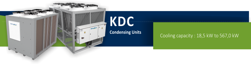 The KDC air cooled condensing unit series is available in cooling only versions able to cover a wide capacity range with models from 18.5 up to 567 kW.